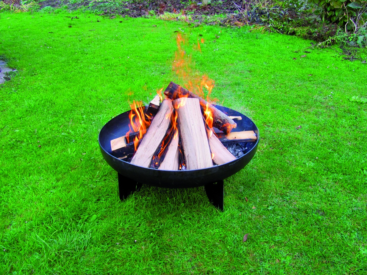 The round fireplace with a diameter of 50 cm and a bowl depth of 13 cm is made of solid steel with a thickness of approx. 2.5 mm.