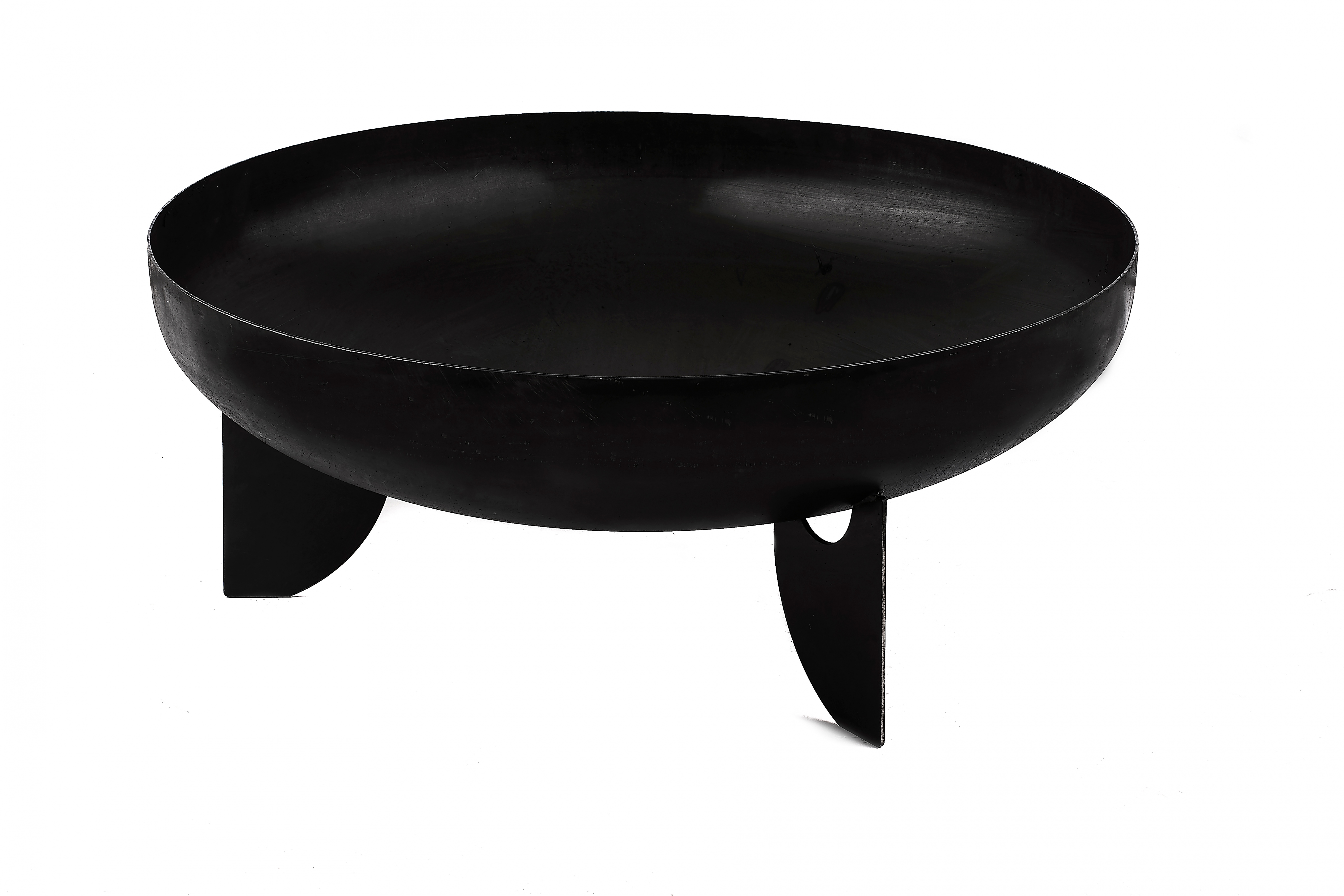 The round fireplace with a diameter of 80 cm and a bowl depth of 21 cm is made of solid steel with a thickness of approx. 2.5 mm. To guarantee maximum stability, it is equipped with three solid bases made of the same material.