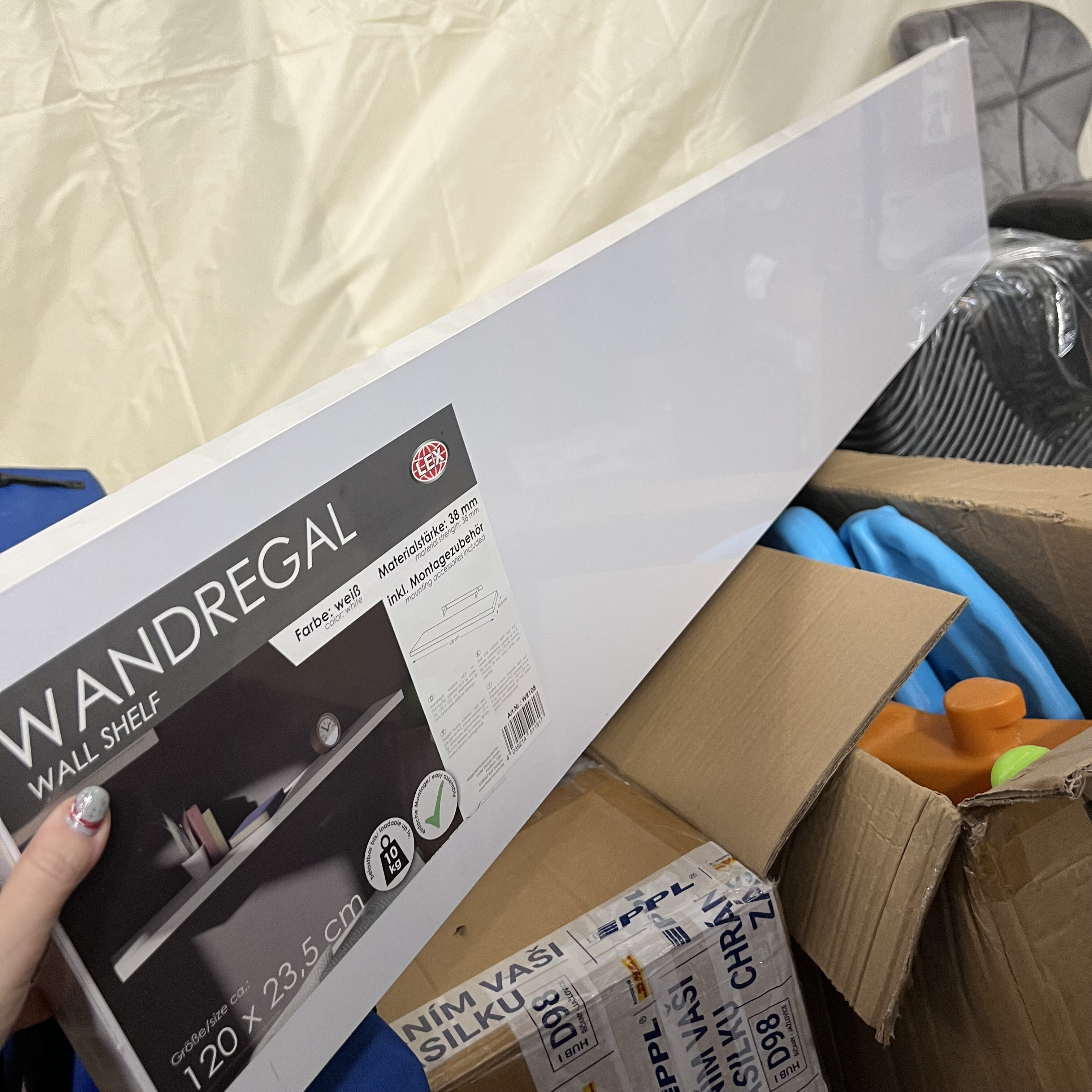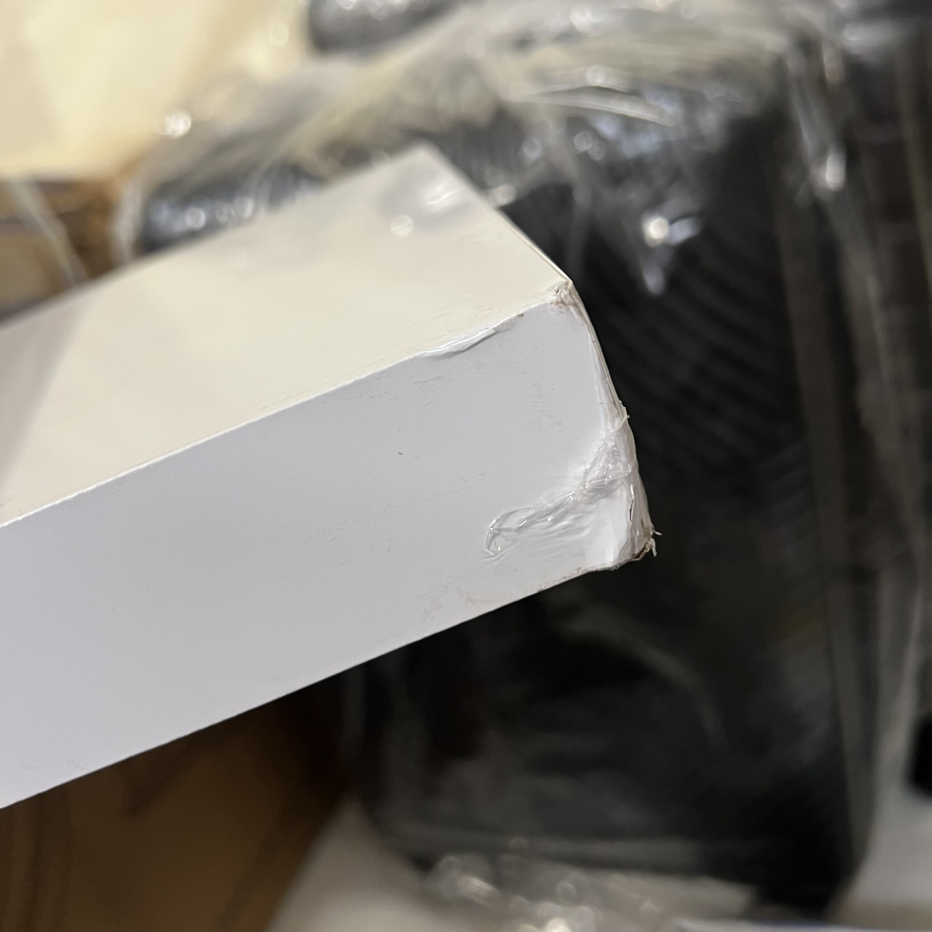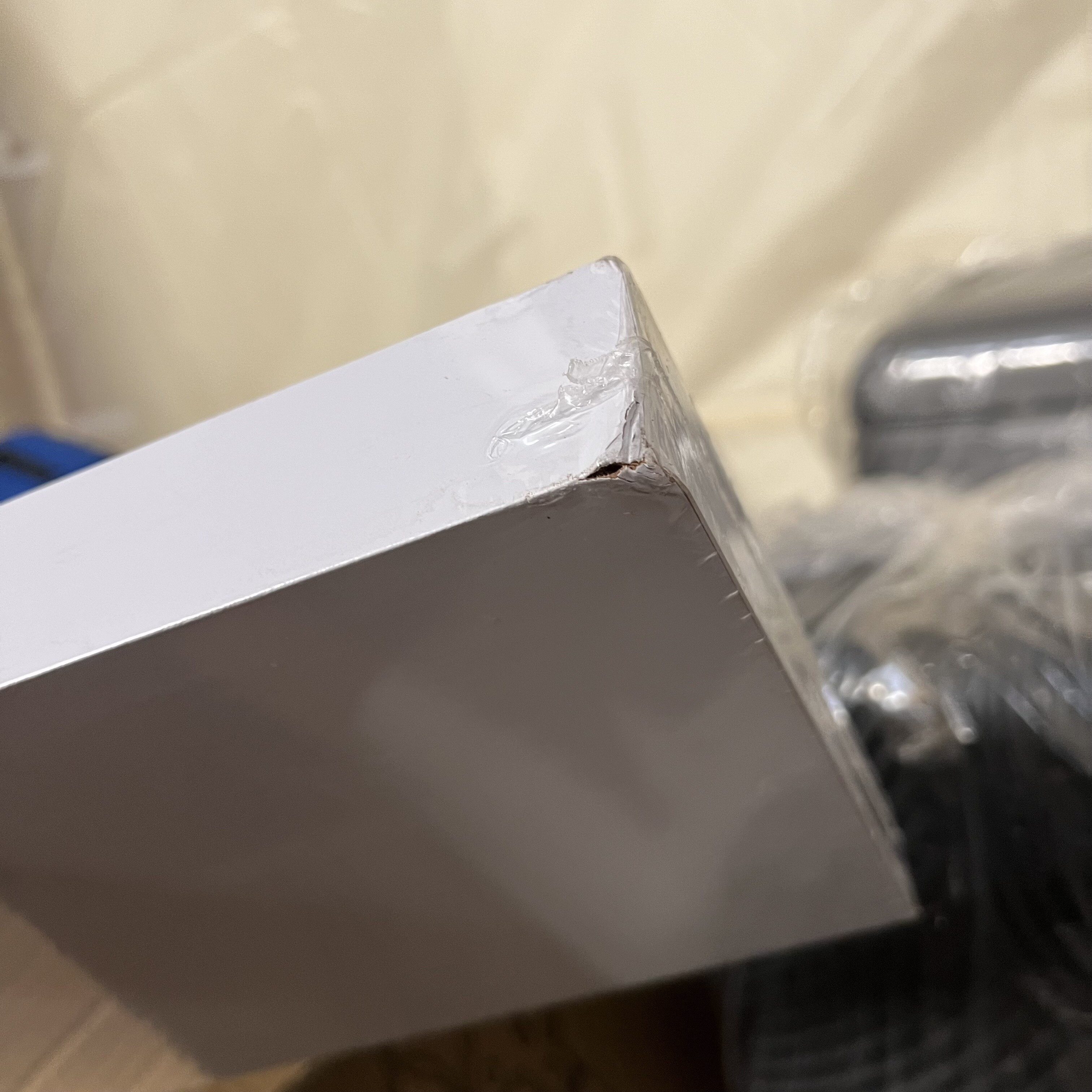 The shelf has damaged corners and edges. In protective film, unused.