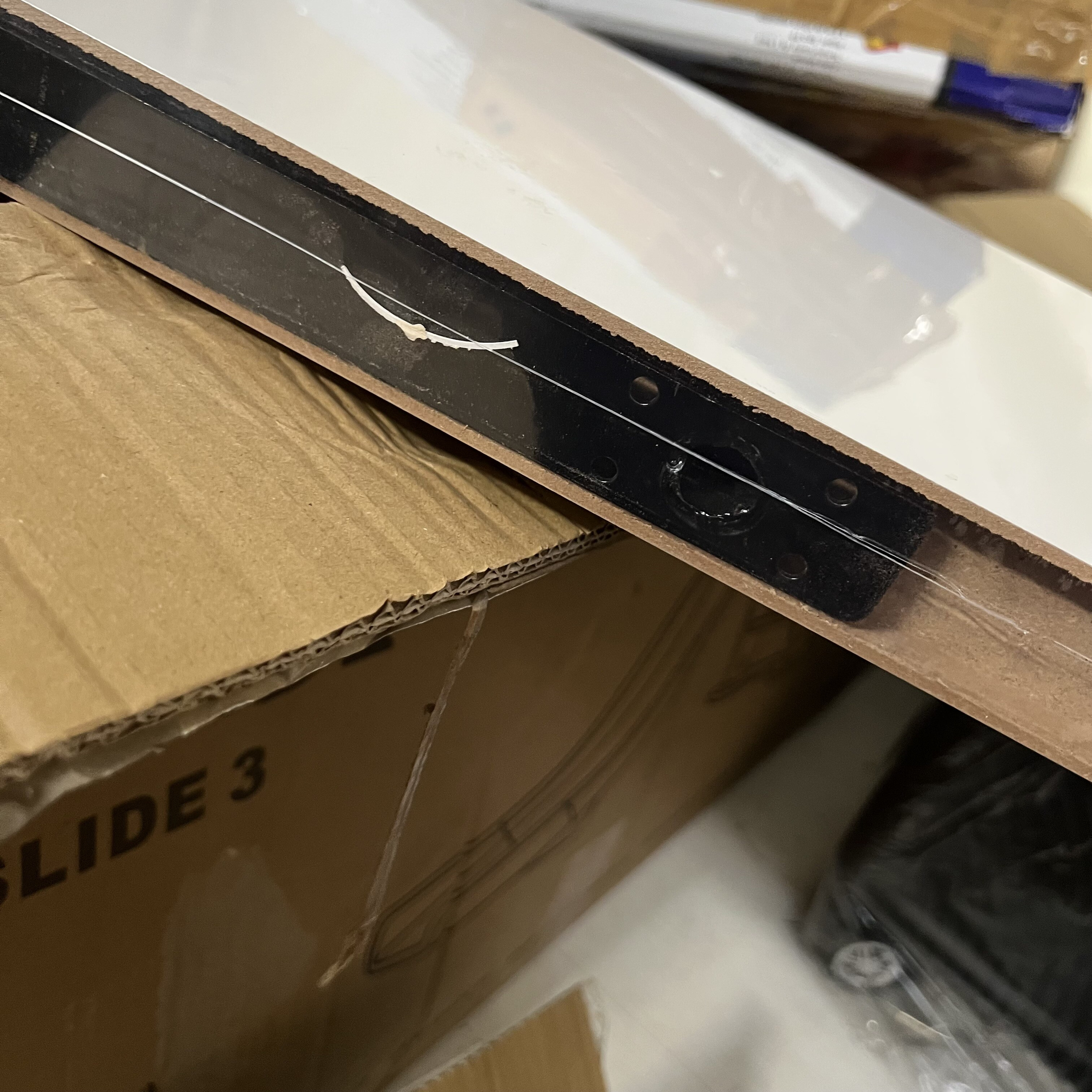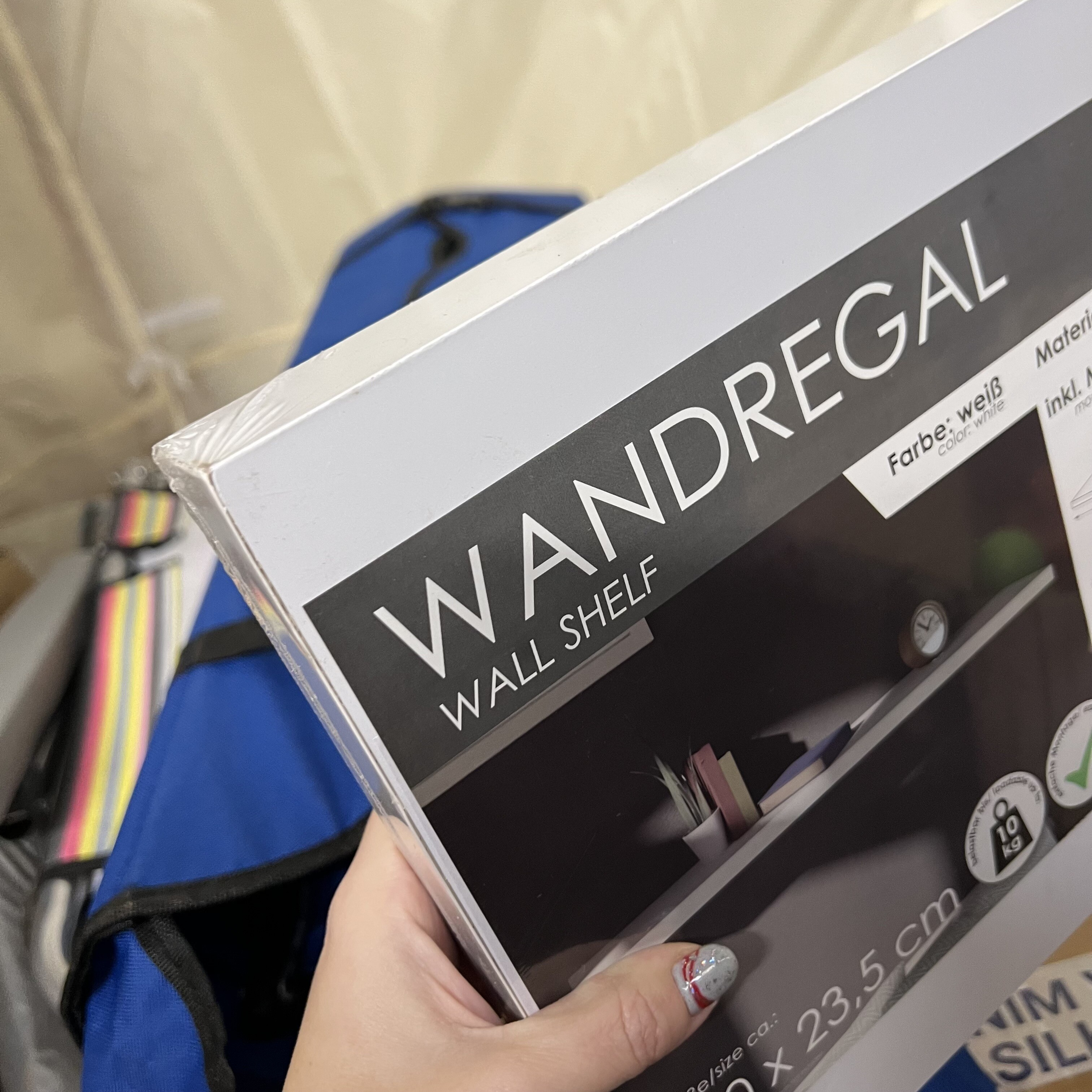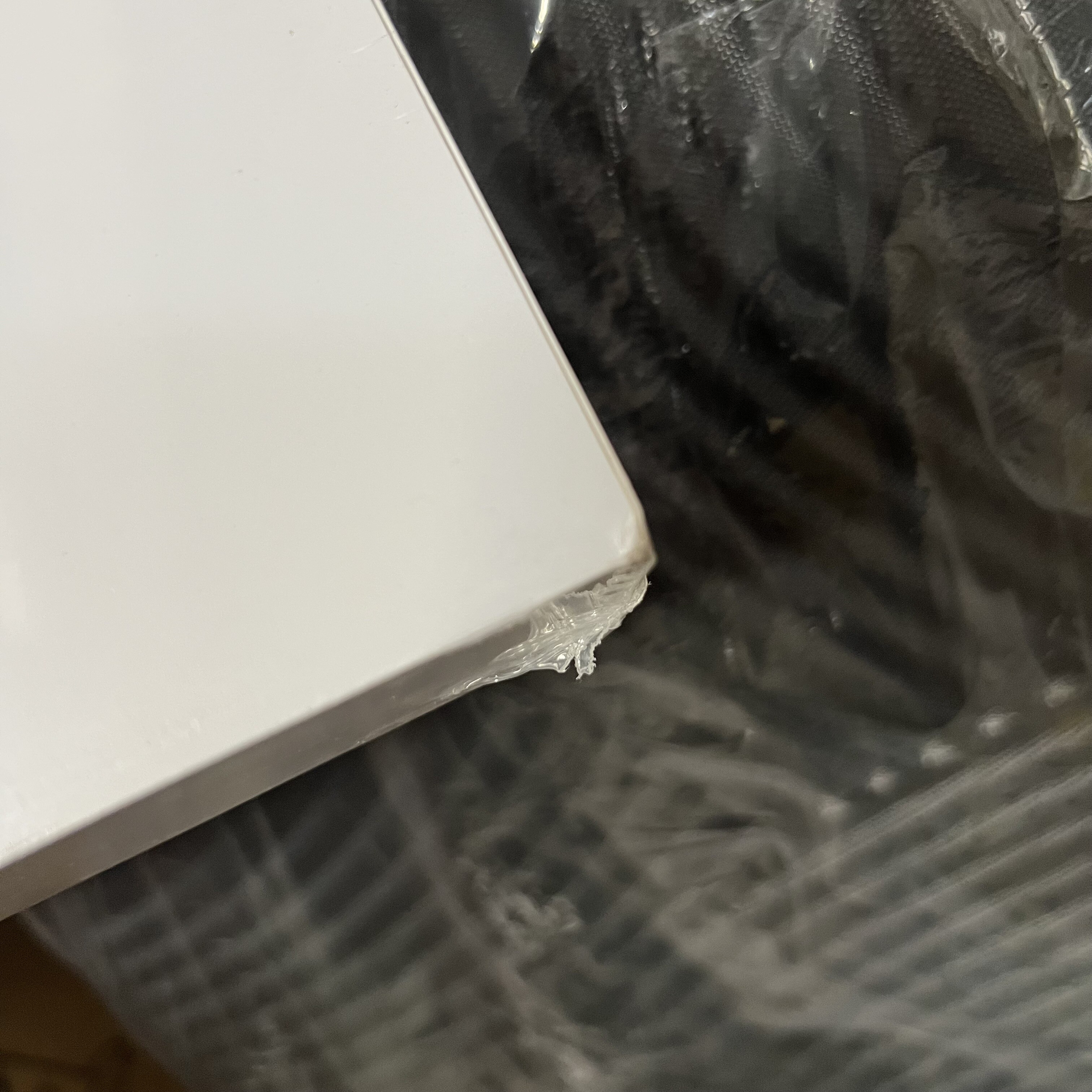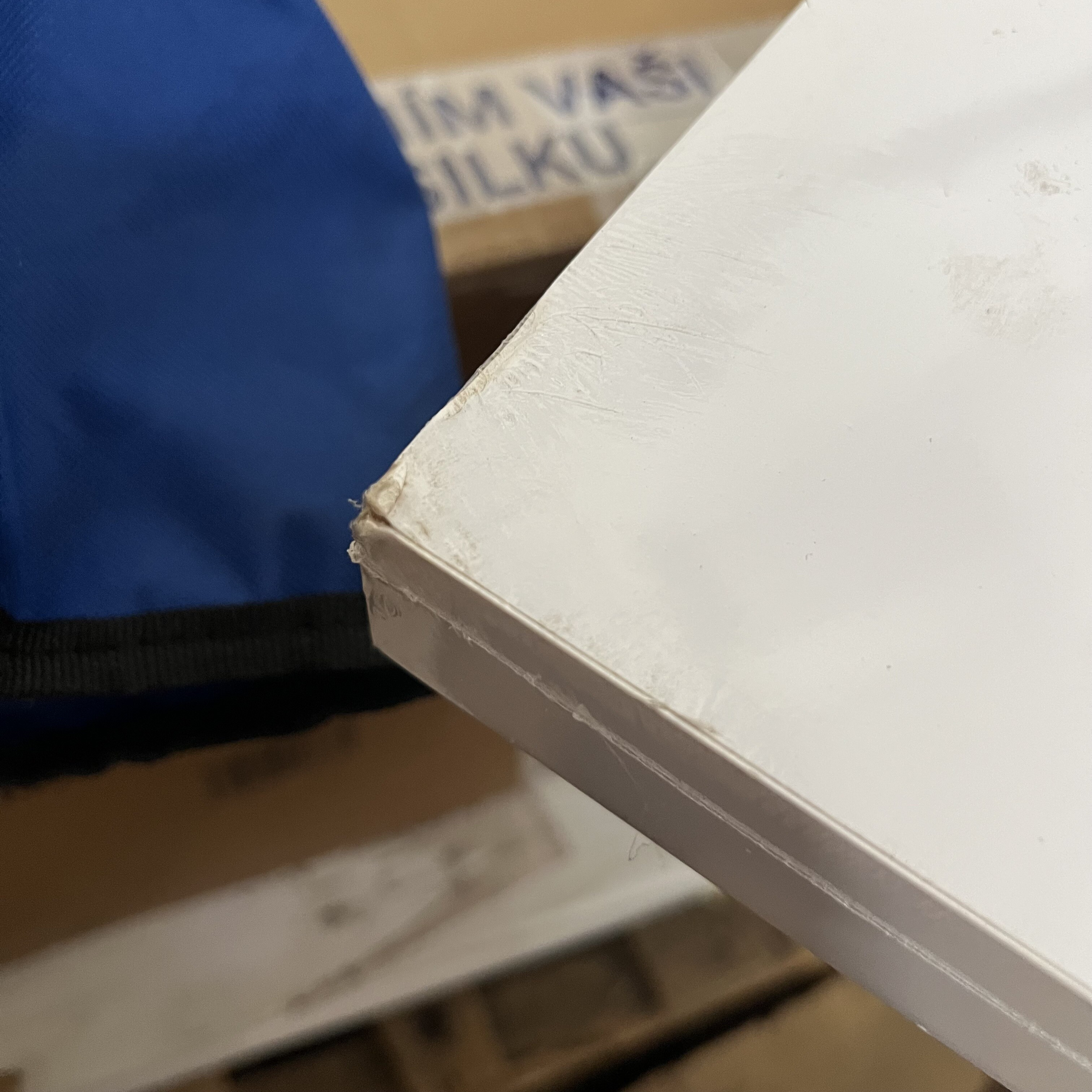 The shelf has damaged corners and edges. In protective film, unused.