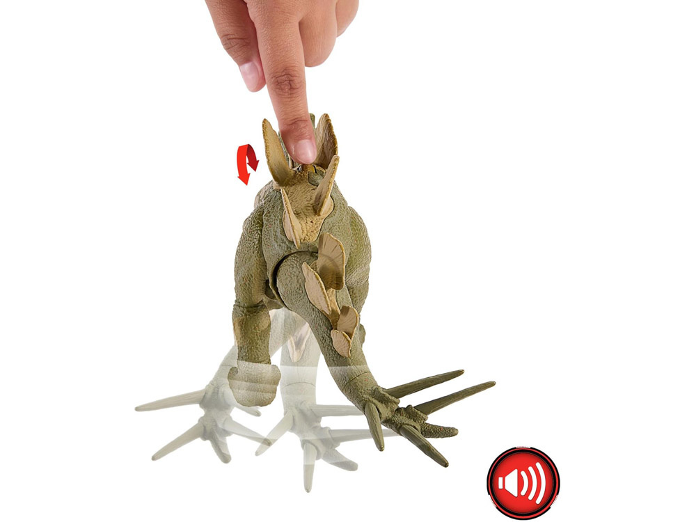 High-quality craftsmanship with attention to detail. An interesting texture imitating dinosaur skin, excellently crafted bone plates on the back, realistic coloring, paws ending in claws, and a detailed animal head make the whole look stunning. Such a terrifying creature is easy to be frightened of, but it can also be a child's favorite toy. It also serves well for reenacting scenes from the Jurassic jungle.