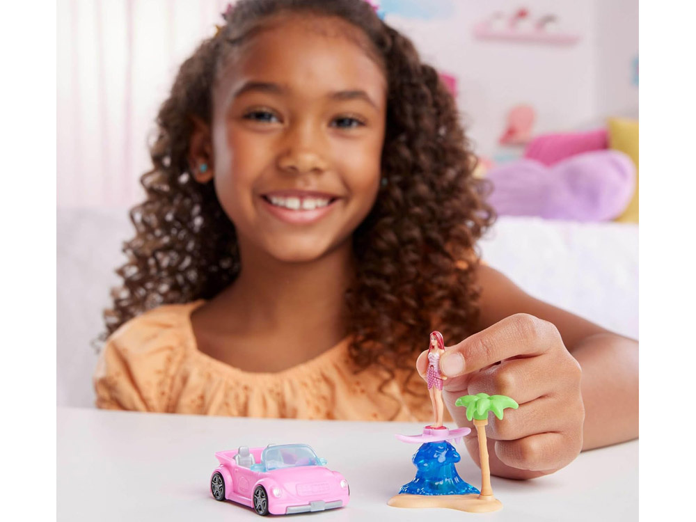 Mini Barbie Doll (3.5 cm) – a carefully crafted doll that bends at the waist and can sit behind the wheel of a vehicle. Her unique style and details ensure that she fits perfectly with the entire Mini BarbieLand series.