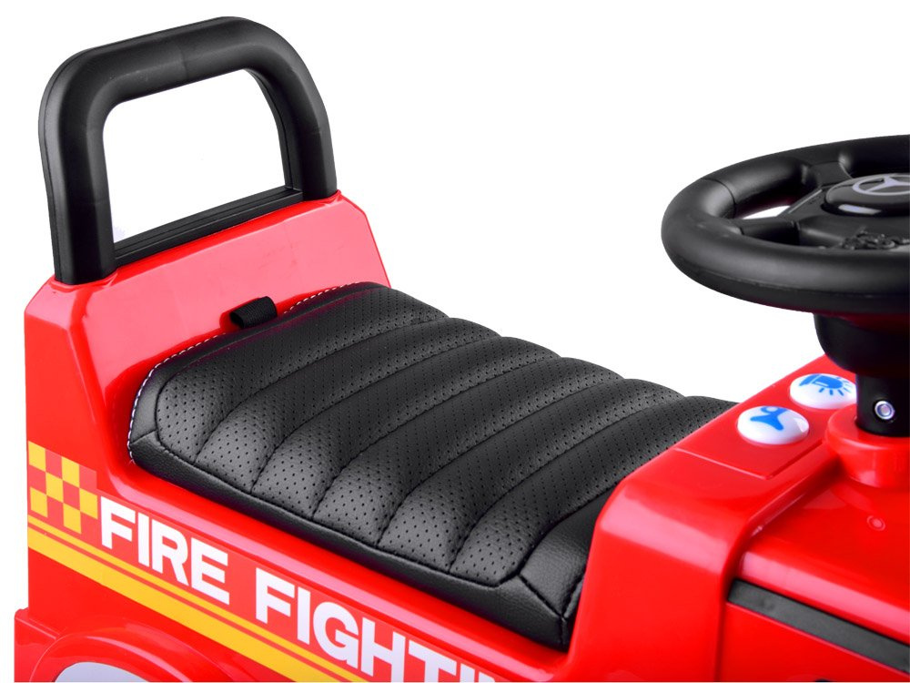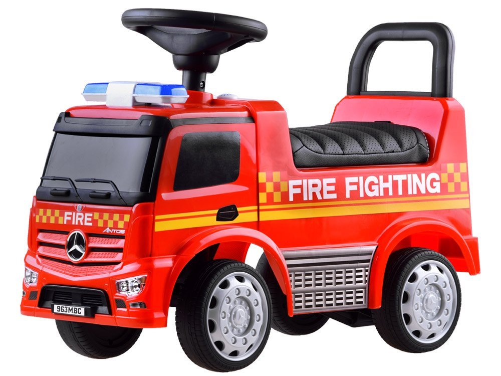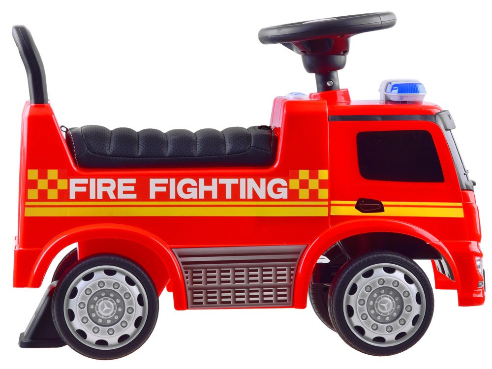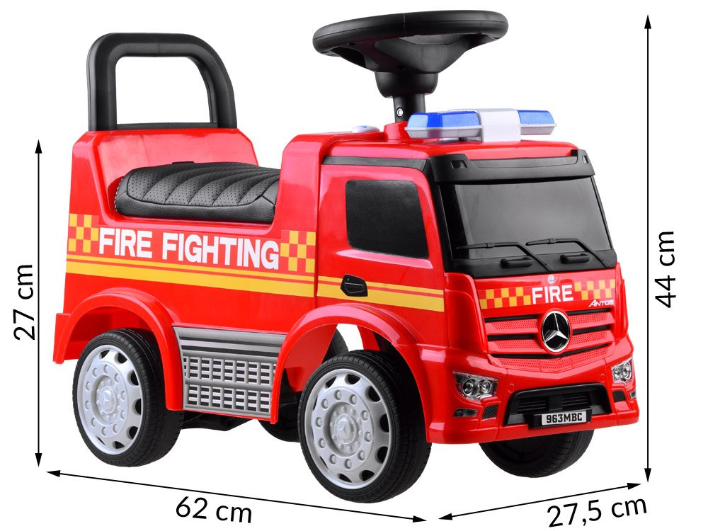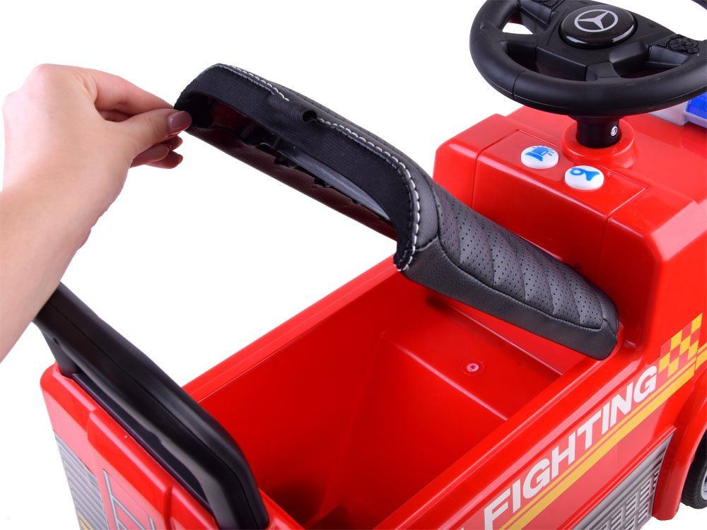 The sensational licensed Mercedes car is ideal as a first vehicle for your toddler. As befits and belongs to a real fire truck, it is equipped with light and sound signals. The car is made exclusively of high quality plastic in intense colours. Getting in and out will not be difficult for your child and the comfortable seat with backrest ensures a comfortable and safe ride. A special locking device prevents the vehicle from rolling backwards while driving.