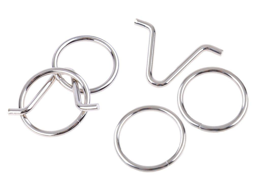A metal puzzle whose goal is to disconnect and reconnect two pieces without using force.