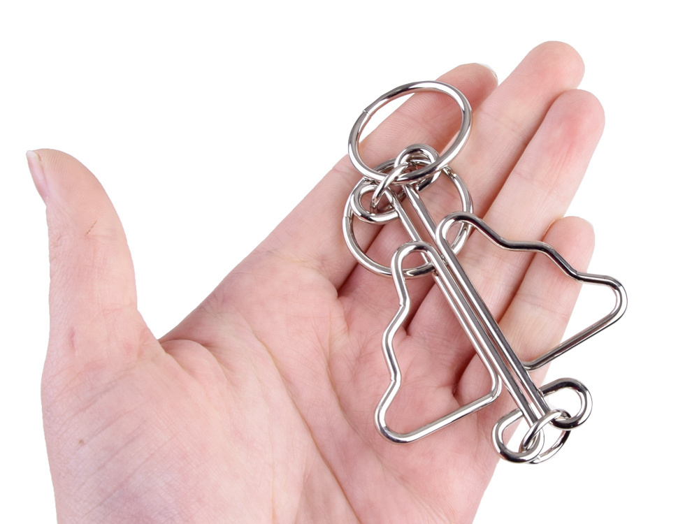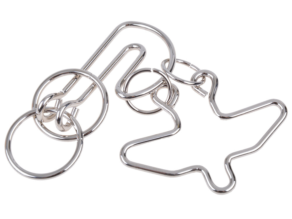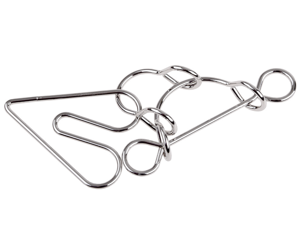 A puzzle whose goal is to separate two metal pieces.