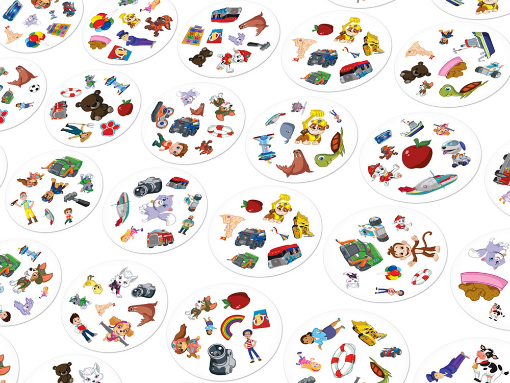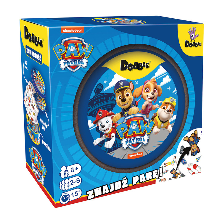 - The deck contains 55 round cards, featuring various symbols associated with Paw Patrol. - The game offers 5 different game variants, but the basic rule remains the same: find the common symbol and act as quickly as possible.
