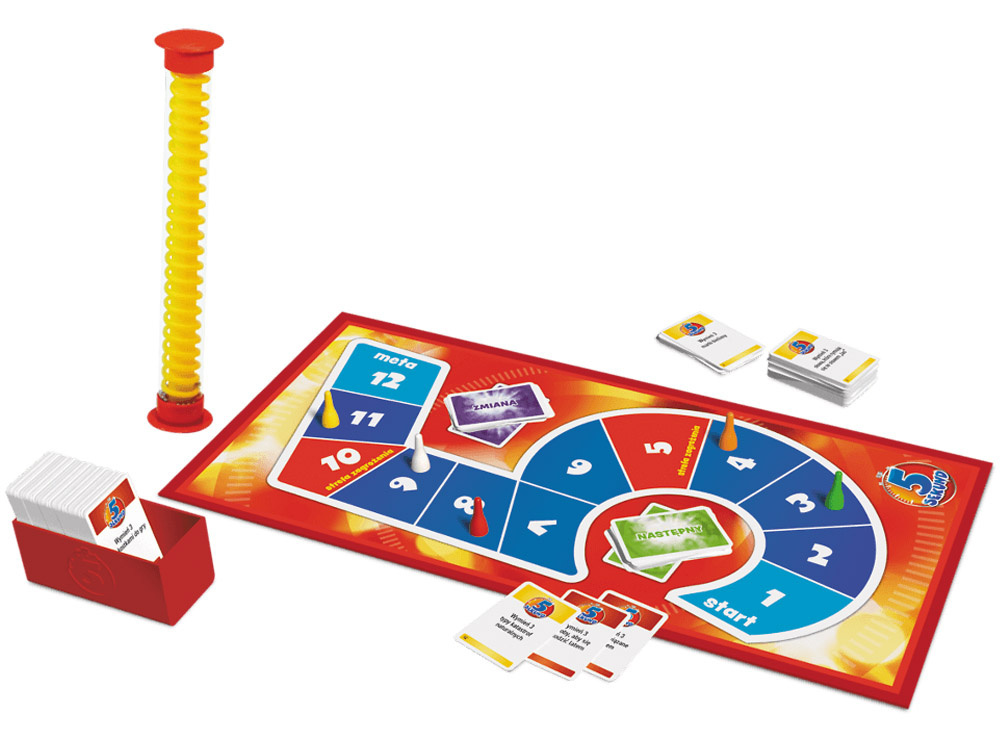 - The game consists of cards with questions and a timer counting down 5 seconds.