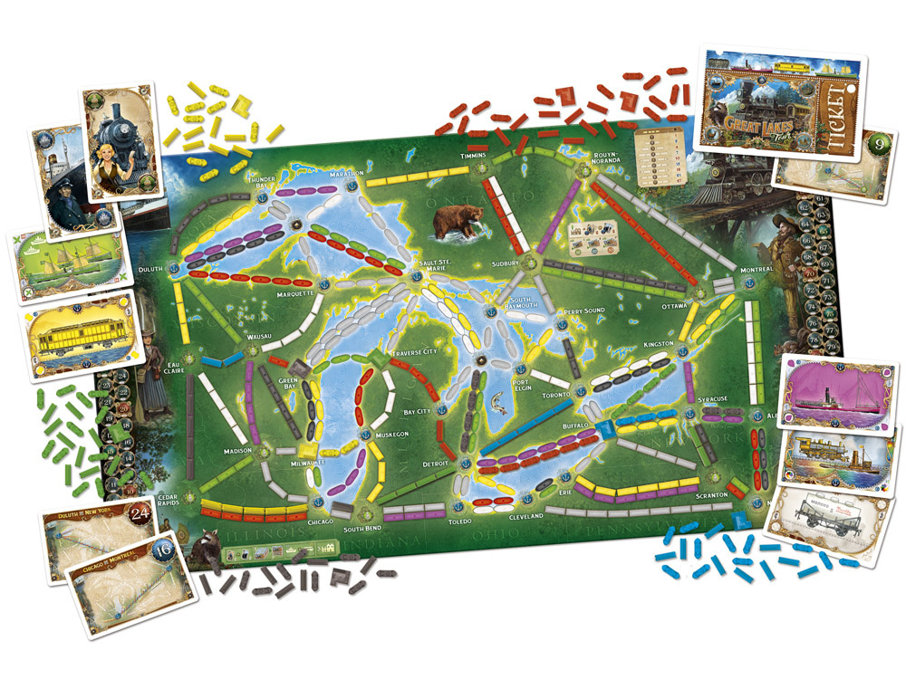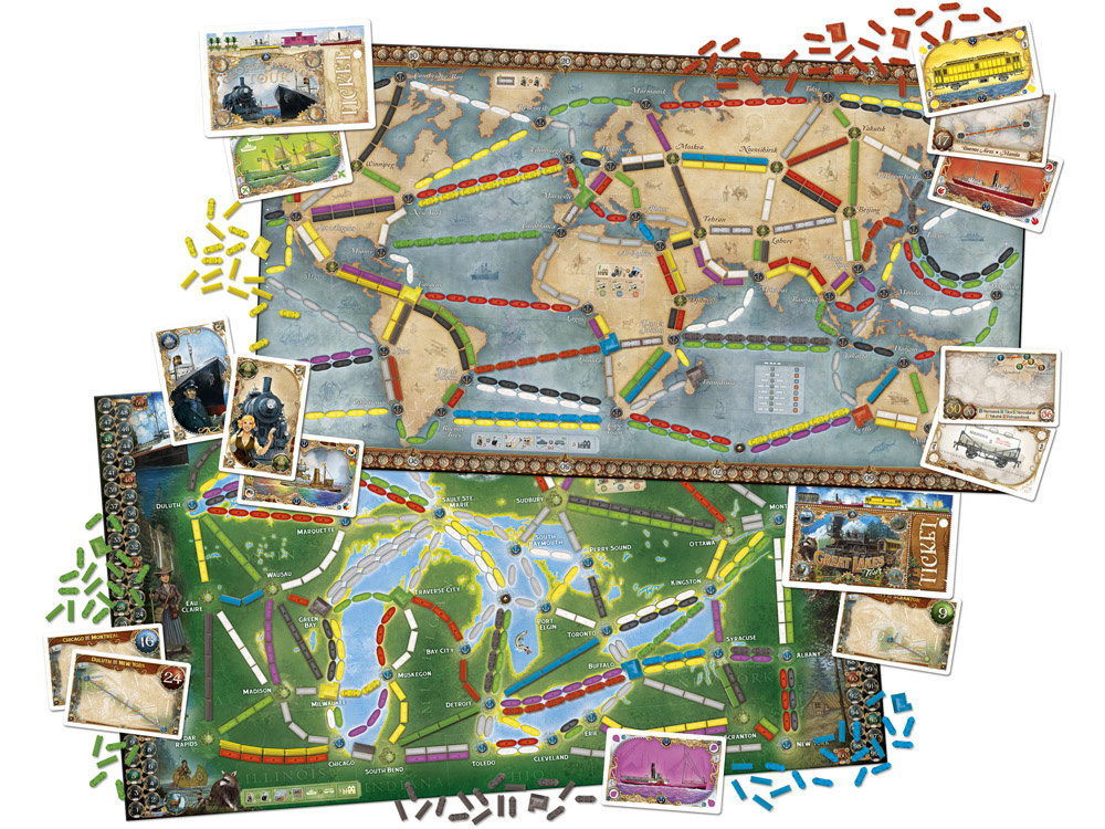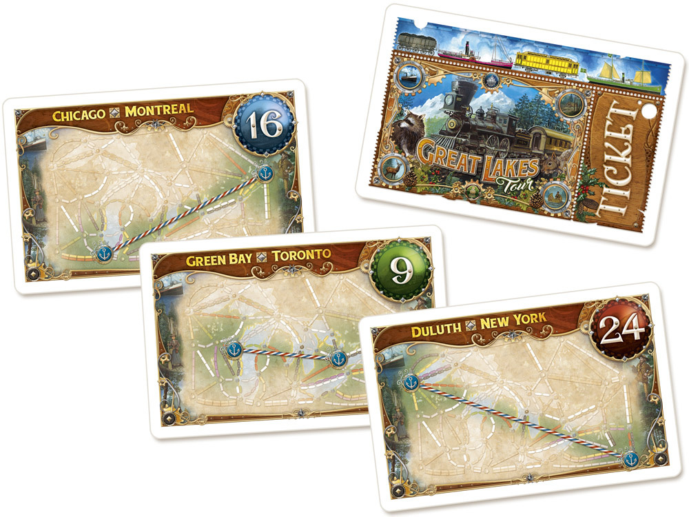 - 120 ticket cards (65 for the World map, 55 for the Great Lakes)