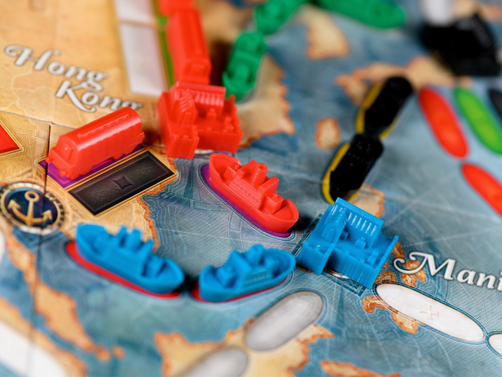 - Double-sided map: two maps in one game mean two different challenges – a journey around the world or a journey across the Great Lakes of North America.