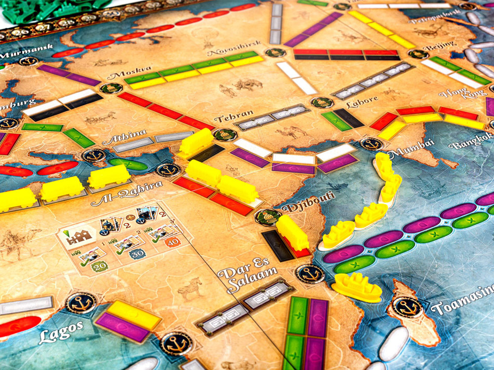 - The game ends when one of the players connects all their tickets or when there are no more cards to draw.- New mechanics: the addition of naval connections and ports brings new challenges and opportunities, even for veterans of the series.