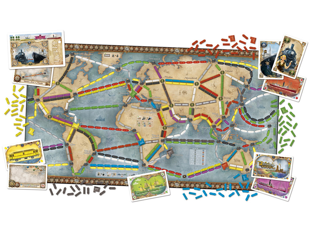 Board the train: Around the World is a new version of the iconic board game series that takes players around the globe, connecting railway and maritime routes. The game offers a double-sided map that allows you to travel around the world or sail the Great Lakes of North America, bringing new mechanics and challenges that will surprise even experienced players.