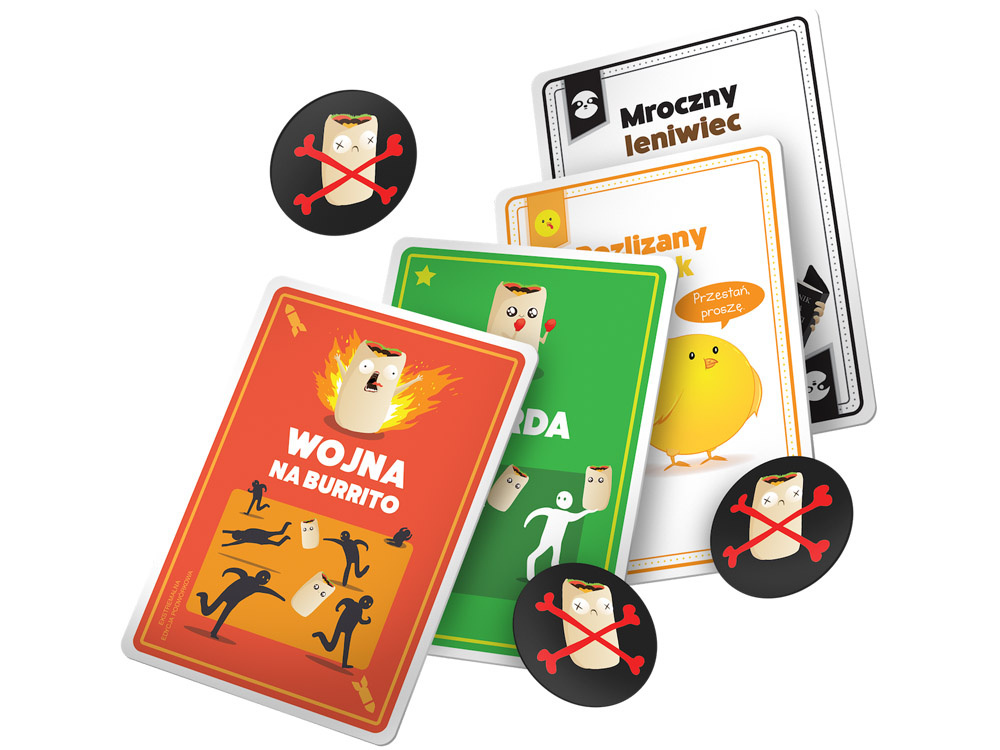 - The cards show which actions the players should take. For example, a card may indicate that one player must throw a burrito at another player, and the one who gets hit must perform some kind of penalty.