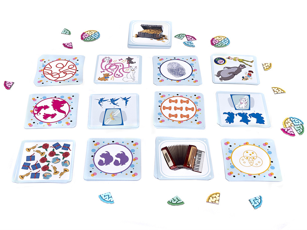 If they collect 2 cards with the same back – they exchange them for 1 of the 4 brain puzzle pieces.