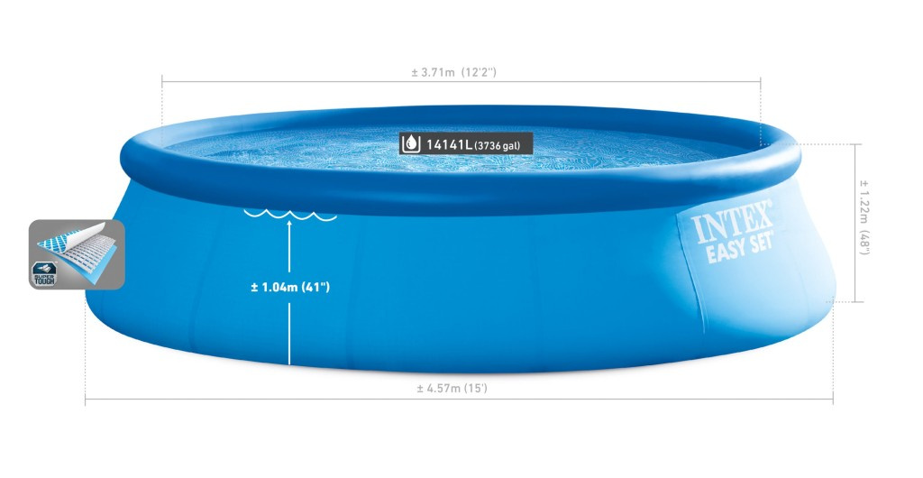 Round pool with a size of 4.57 m x 1.22 m.