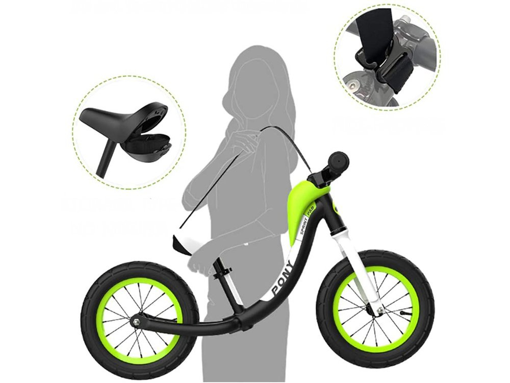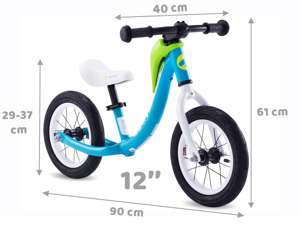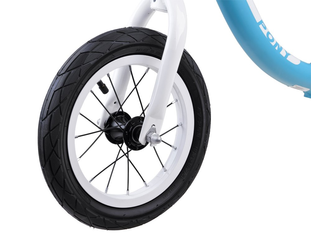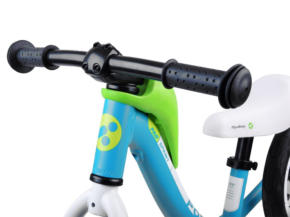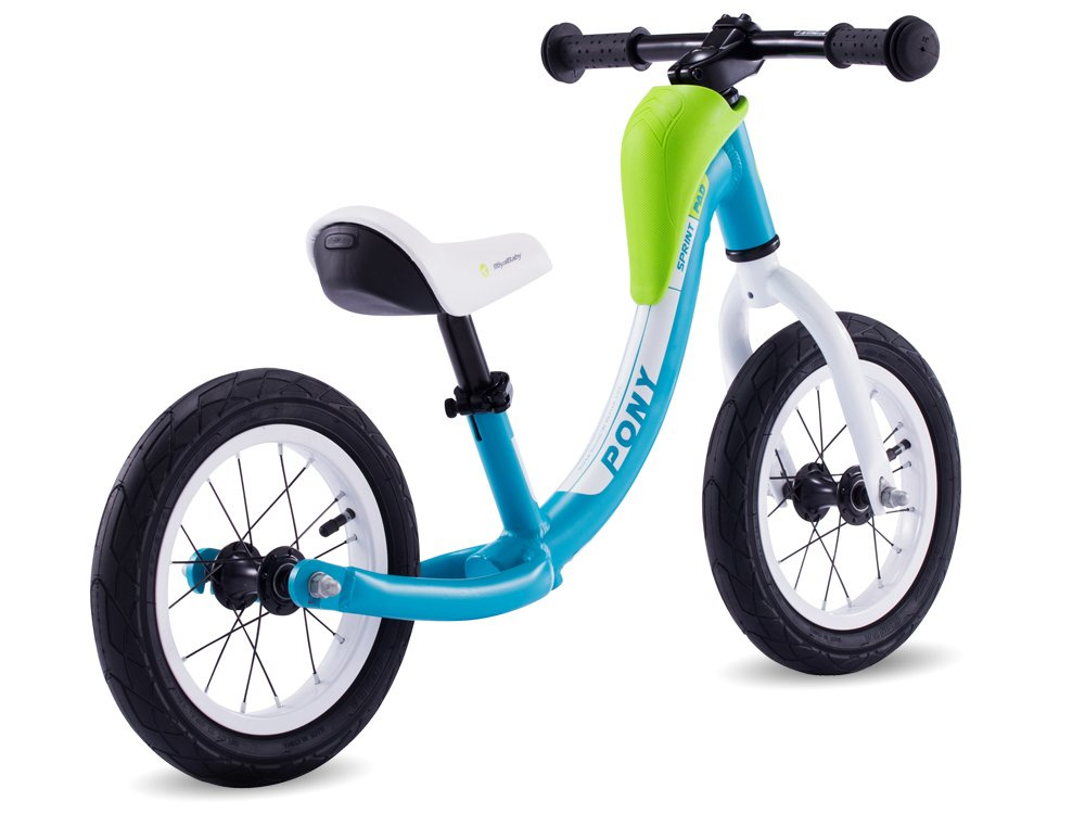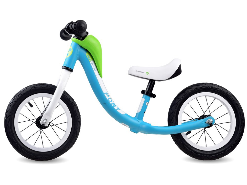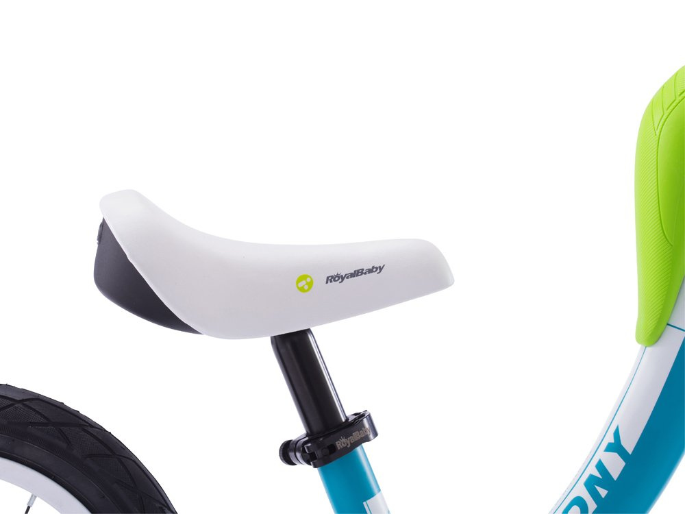 TheRoyalBaby PONY SPRINT with 12-inch pumped wheels is a lightweight and comfortable bike in blue. It is ideal for children as young as 3 years old. The bicycle is set in motion by the child's feet. While playing, the child exercises his sense of balance and overall coordination of movements, skills so important for later cycling. Thanks to the adjustable saddle, the bike will grow with our little cyclist. The bike frame is made of aluminium except for the front fork. A rubber cover is placed on the frame of the bike to protect it from possible impacts. The lightweight aluminium construction ensures that your toddler can manoeuvre safely during the ride. Royalbaby is a brand of bicycles designed for children. The products of this brand are characterized by high quality workmanship, attractive design and innovation. It guarantees a safe and enjoyable ride for every child. The RoyalBaby also has parents in mind, as it has a storage compartment in the saddle and a strap that allows parents to easily move the bike to any location at the end of the walk.
