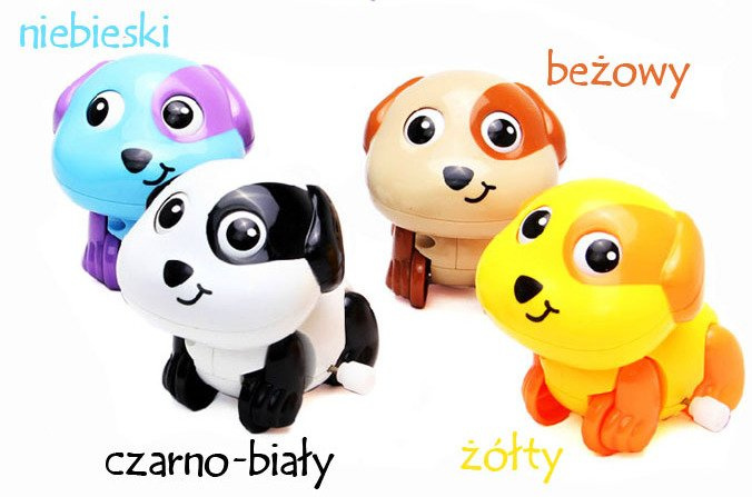 Meet the perfect playmate for a crawling baby! Let the wind-up dog run on the floor and it will move on its own, moving its eyes and tail from side to side.The exciting action with the flying animal encourages the child to follow the toy and crawl more boldly.An adorable, playful dog will provide plenty of fun for any small child.This is a toy designed for the youngest children, which is size-appropriate for small hands!The animal is activated by winding the spring.