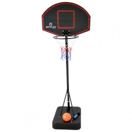 Mobile children's basketball hoop with adjustable height, solid plastic top and a net rim with a dimension of 30.5 cm.