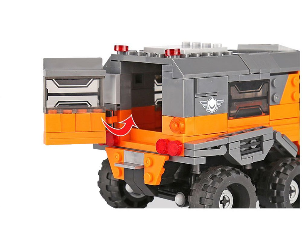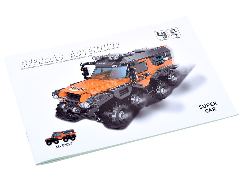 Super Car Offroad Adventure is a set of dice designed to build a field vehicle. The blocks allow you to build an eight-wheeled vehicle for special tasks. The great thing is that once such a vehicle is built, it has moving parts.