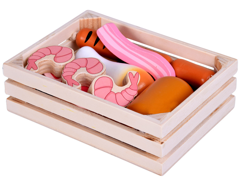 A wooden box of cold cuts is an excellent gift idea for any child, who enjoys playing cooking games or role-playing. This is a classic, durable, and educational toy that will provide many hours of joy and creative play. Welcome to Jokomisiada store, where you will find a wide selection of wooden toys, as well as all kinds of kitchens and accessories with "cooking" and "store" themes.