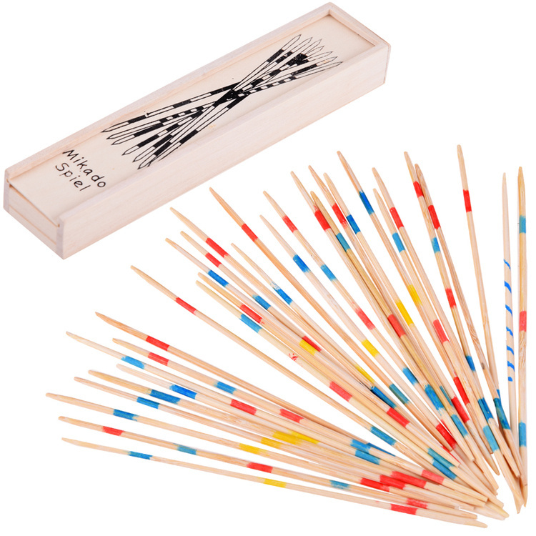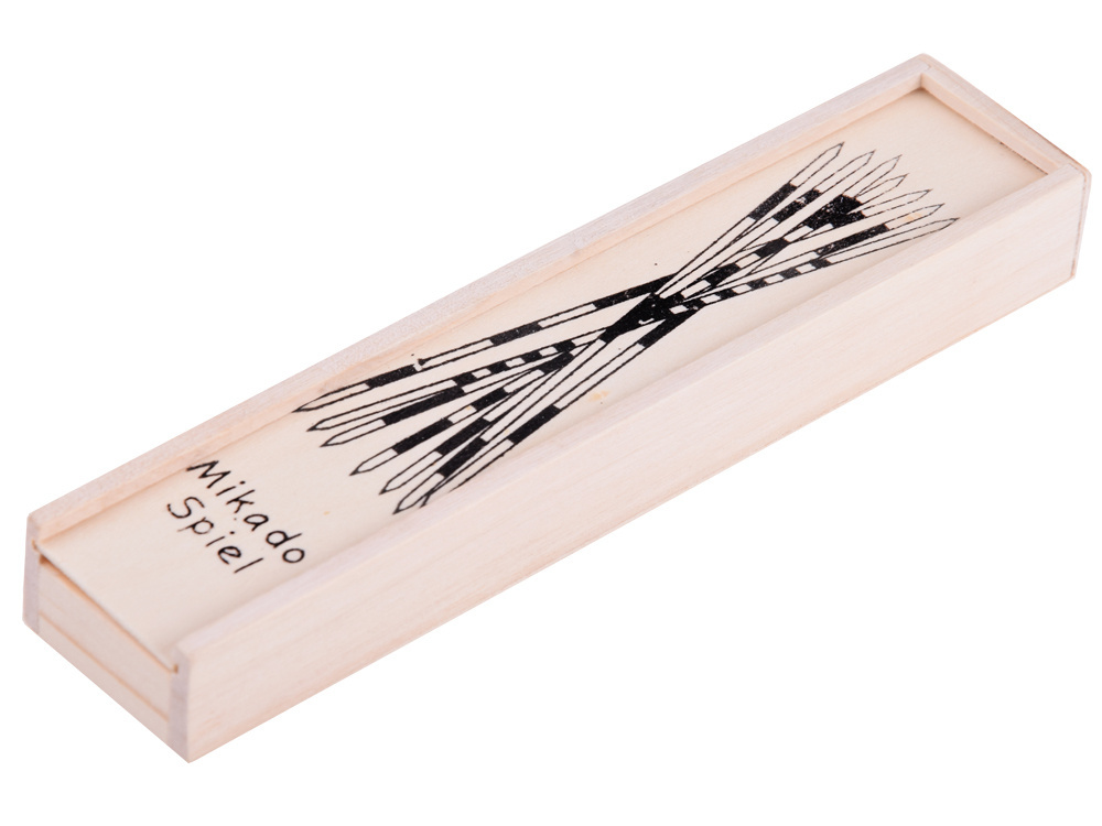 Mikado is an arcade game played by at least two people.The individual bars differ in the number and colour of the painted stripes that indicate the value of the purse. To start the game, scatter a bundle of sticks on the table and hold them vertically in your cupped hand. This creates a pile from which players must take a die one by one so as not to move the others. If even one bar is moved during the game, the move is lost and the next player takes over the task. The winner is the player who collects the sticks with the highest total. The game develops patience, concentration and the ability to control your own body.